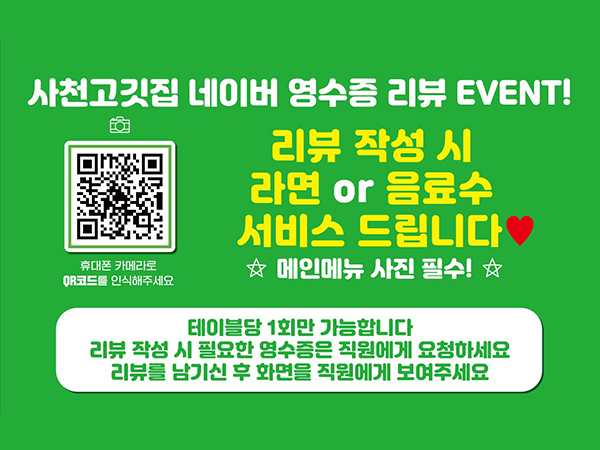 저희 사천고깃집을 찾아주시면 언제나 후회 없는 선택이 되도록 최선을 다하겠습니다. 많은 관심과 사랑 부탁드립니다!